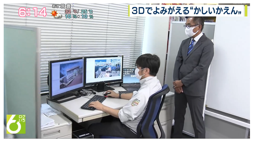 NHK福岡放送局様のニュース番組「ロクいち!福岡」より、当社のデジタルアーカイブ技術について取材を受けました。当社でおこなわれた取材では、西日本鉄道株式会社様とともに、「かしいかえん」で実施した点群の復元技術や計測装置「VestCart」を紹介し、今後の活用などについても、お伝えしました。